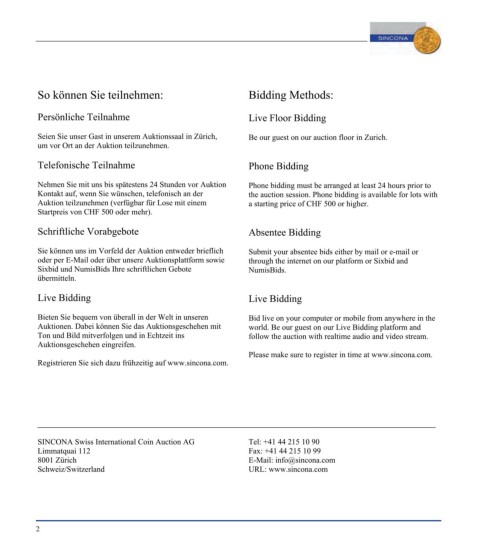 SINCONA Swiss International Coin Auction AG Tel: +41 44 215 10 90
