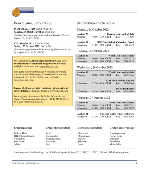 by e-mail (info@sincona.com). Auction 80 Swiss Coins and Medals