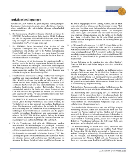 2. Der SINCONA Swiss International Coin Auction AG (im Zuschlagspreis ein Aufgeld in der Höhe von 20% zu entrichten.