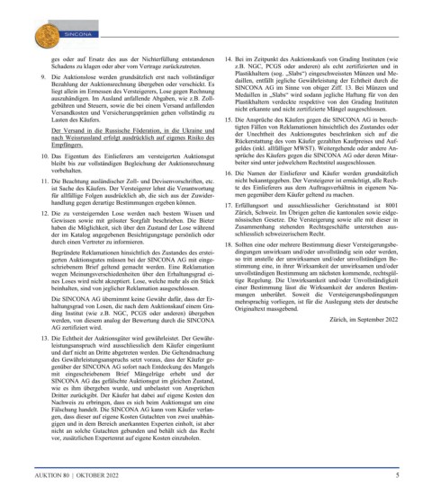 Bezahlung der Auktionsrechnung übergeben oder verschickt. Es SINCONA AG im Sinne von obiger Ziff. 13. Bei Münzen und
