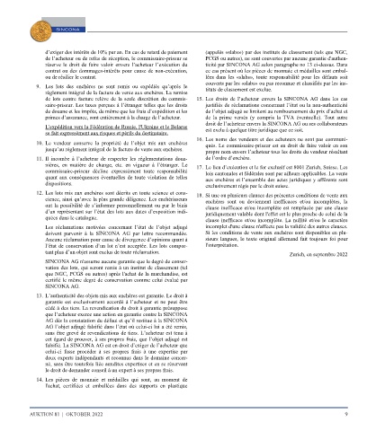 9. Les lots des enchères ne sont remis ou expédiés qu’après le tituts de classement est exclue.