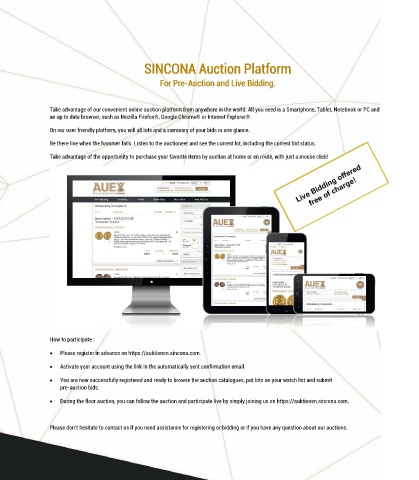During the floor auction, you can follow the auction and participate live by simply joining us on https://auktionen.sincona.com.