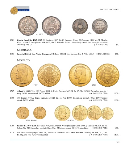 Page 167 - SINCONA Auction 66 - World Gold and Silver Coins and Medals, SINCONA Bullion Auction, World Banknotes