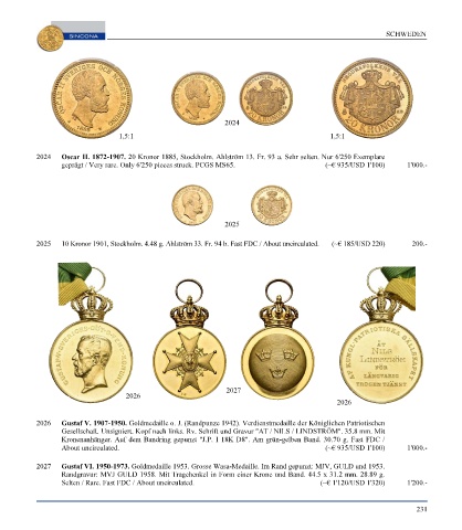 Page 233 - SINCONA Auction 66 - World Gold and Silver Coins and Medals, SINCONA Bullion Auction, World Banknotes