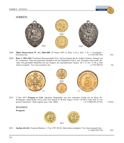 Page 234 - SINCONA Auction 66 - World Gold and Silver Coins and Medals, SINCONA Bullion Auction, World Banknotes