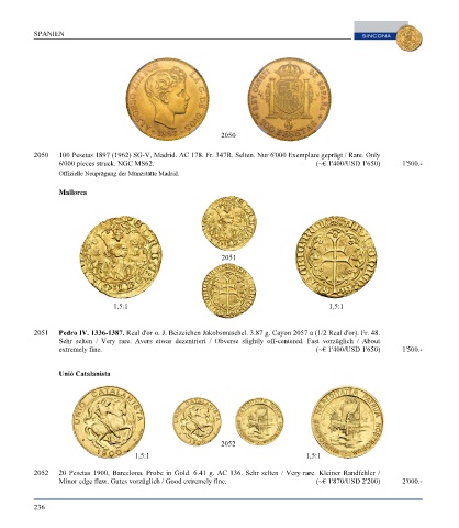 Page 238 - SINCONA Auction 66 - World Gold and Silver Coins and Medals, SINCONA Bullion Auction, World Banknotes