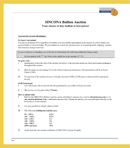 I Bids for the SINCONA Bullion-Auction can be submitted in advance by e-mail to info@sincona.com or via