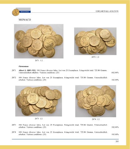 Page 285 - SINCONA Auction 66 - World Gold and Silver Coins and Medals, SINCONA Bullion Auction, World Banknotes