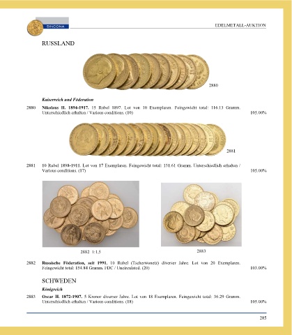 Page 287 - SINCONA Auction 66 - World Gold and Silver Coins and Medals, SINCONA Bullion Auction, World Banknotes