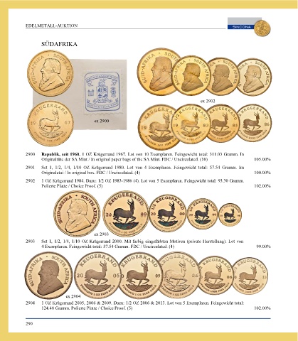 Page 292 - SINCONA Auction 66 - World Gold and Silver Coins and Medals, SINCONA Bullion Auction, World Banknotes