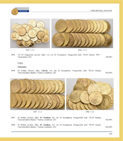 Page 293 - SINCONA Auction 66 - World Gold and Silver Coins and Medals, SINCONA Bullion Auction, World Banknotes