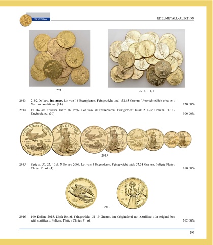 Page 295 - SINCONA Auction 66 - World Gold and Silver Coins and Medals, SINCONA Bullion Auction, World Banknotes