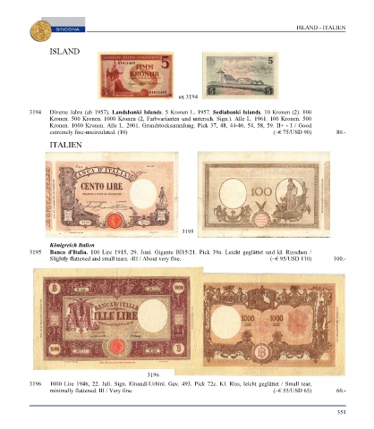 Page 353 - SINCONA Auction 66 - World Gold and Silver Coins and Medals, SINCONA Bullion Auction, World Banknotes