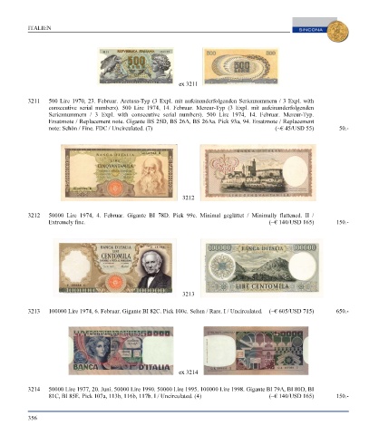 Page 358 - SINCONA Auction 66 - World Gold and Silver Coins and Medals, SINCONA Bullion Auction, World Banknotes