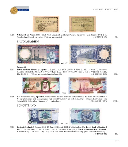 Page 399 - SINCONA Auction 66 - World Gold and Silver Coins and Medals, SINCONA Bullion Auction, World Banknotes