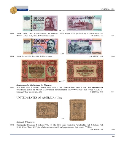Page 409 - SINCONA Auction 66 - World Gold and Silver Coins and Medals, SINCONA Bullion Auction, World Banknotes