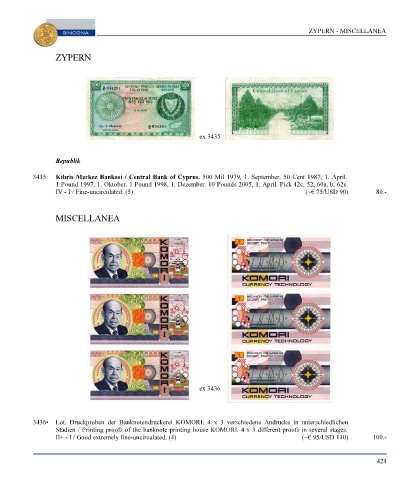 Page 423 - SINCONA Auction 66 - World Gold and Silver Coins and Medals, SINCONA Bullion Auction, World Banknotes
