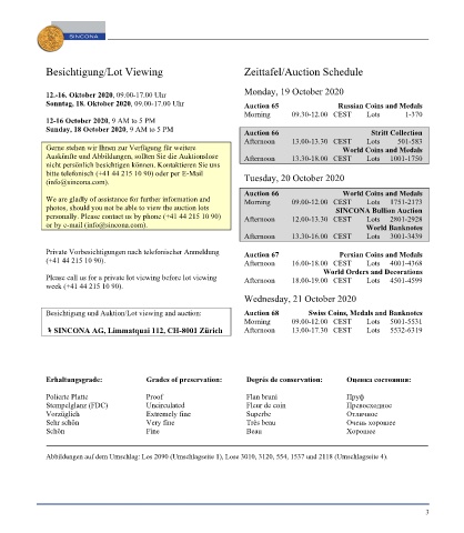 Besichtigung/Lot Viewing Zeittafel/Auction Schedule