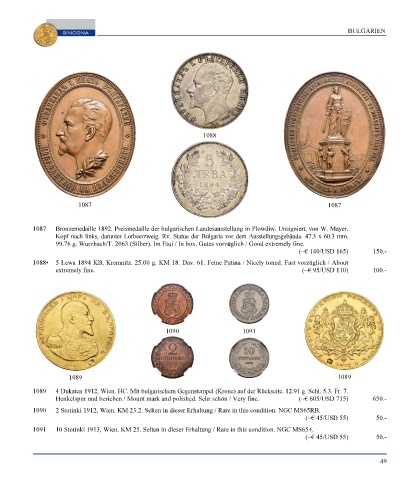 Page 51 - SINCONA Auction 66 - World Gold and Silver Coins and Medals, SINCONA Bullion Auction, World Banknotes