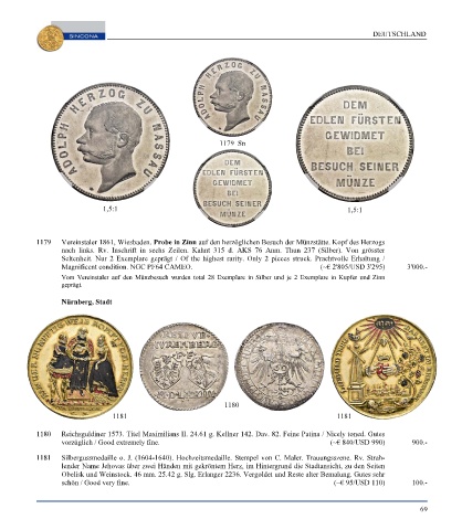 Page 71 - SINCONA Auction 66 - World Gold and Silver Coins and Medals, SINCONA Bullion Auction, World Banknotes
