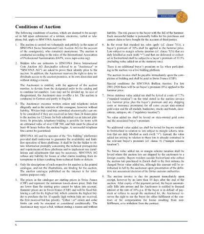Special conditions for SINCONA Bullion Auction: For lots