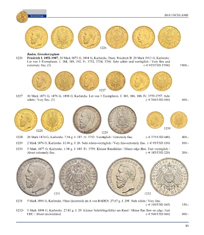 Page 83 - SINCONA Auction 66 - World Gold and Silver Coins and Medals, SINCONA Bullion Auction, World Banknotes