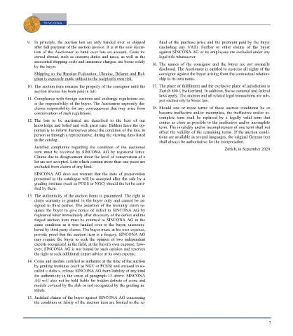 tion of the Auctioneer to hand over lots on account. Costs in- against SINCONA AG or its employees are excluded under any